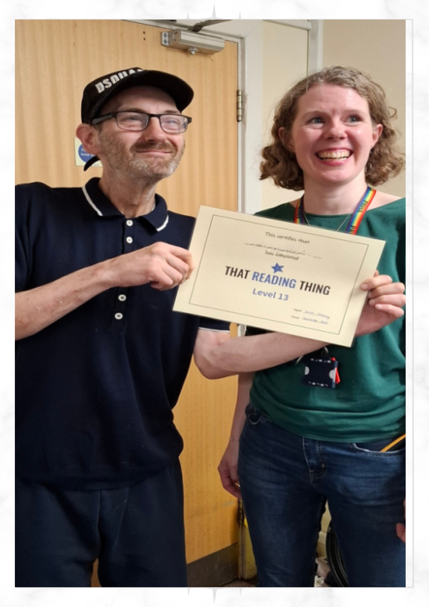The aim of the lessons is for residents to be able to work on their skills and enjoy taking part. When I start working with a resident, I ask them what skills they want to work on and how they like to study. We make a plan for their study together. We celebrate successes and achievements. If a resident is interested in other classes, for example at college or at the library, I can help them to find these also.